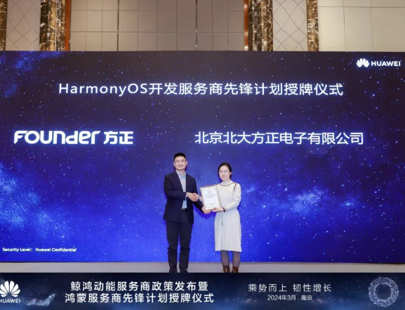 方正電子率先成為華為“鴻蒙服務(wù)商先鋒計劃”生態(tài)伙伴,解決方案亮相2024華為中國合作伙伴大會