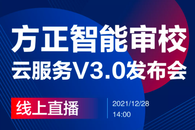 12月28日,“方正智能審校云服務V3.0新版本發(fā)布會”直播活動召開,方正智能審校V3.0正式發(fā)布。新版本致力于為用戶量身...